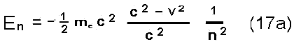 En = - ½ α2 mec2/ n2= - ½ 1/γ2 me c2 / n2 (16b)